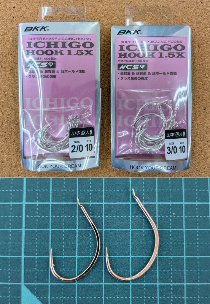 ↑ サイズ:2/0・3/0 細軸・軽量設計で吸い込まれやすさと高いフッキング率を実現。サクラマスジギングにオススメです。