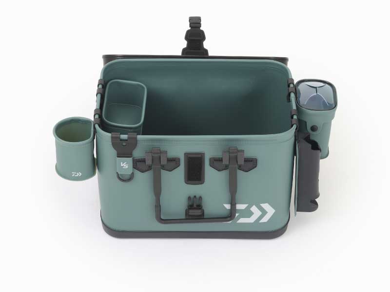 タックルバッグのかぶせブタと干渉しにくいロングフックが特徴で、汚れを落としやすく丸洗い可能なEVA素材を使用。